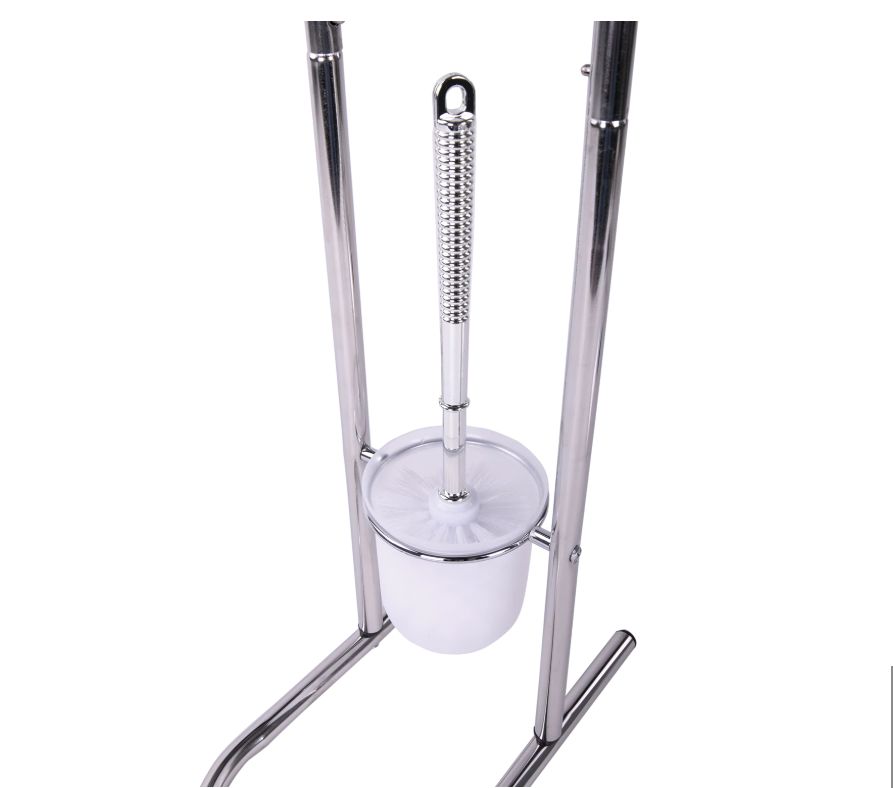 Изделие представляет собой эргономичную напольную стойку с держателем для туалетной бумаги и подставкой для ершика. Стойка и держатель для туалетной бумаги изготовлены из хромированной стали. Ершик и подставка для ершика изготовлены из пластика. Ершик входит в комплект.