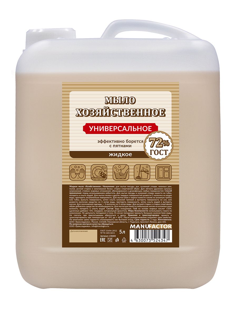 Жидкое хозяйственное мыло, 5 л MANUFACTOR