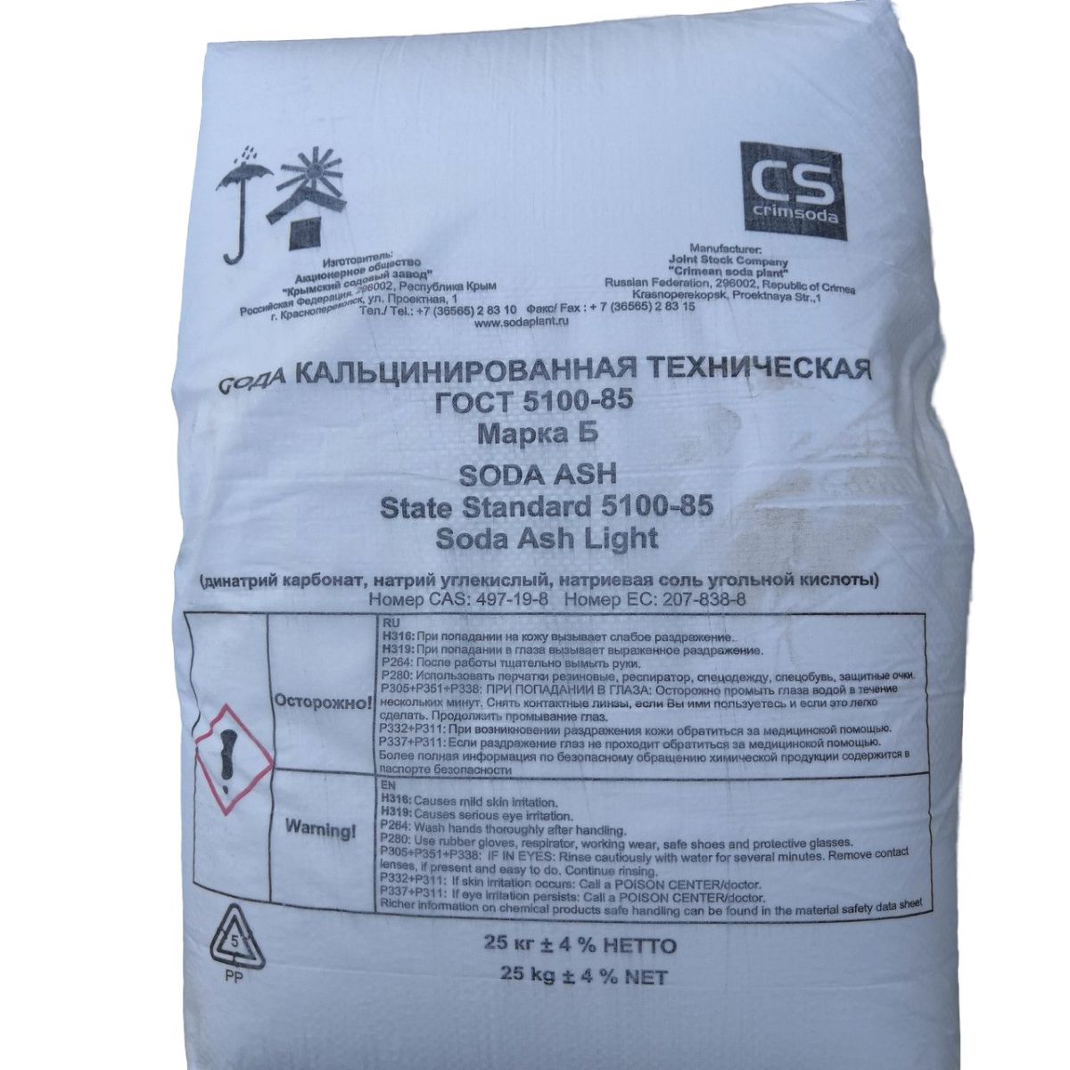 рН+плюс Сода кальцинированная «Б» (Карбонат натрия), 25 кг Крым